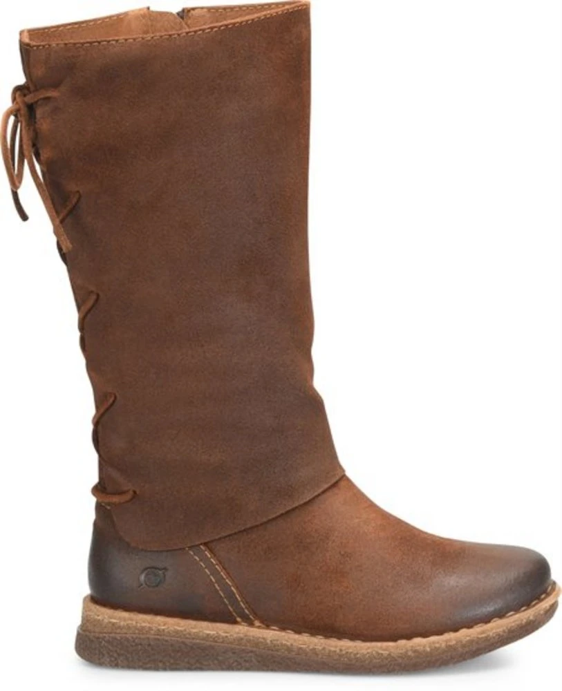 The Sable boot is expertly crafted and laced by hand. Features distressed leather upper, inside zipper for easy on and off, and a flexible lightweight rubber outsole. A soft fabric suede covered footbed provodes extra comfort and support. Heel Height: 1 Inch. Shaft Height: 12 1/2 Inches and Shaft Circumference: 15 Inches