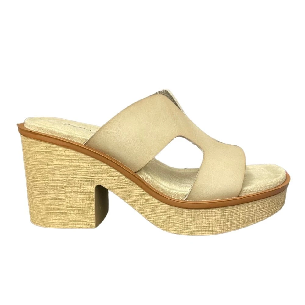 This chunky slip on shoe will complete any outfit. Features a faux leather thick upper band with two side cut outs. A 3 inch heel and 0.8 inch platform provides you with the perfect amount of height. Pair with jeans or a dress.