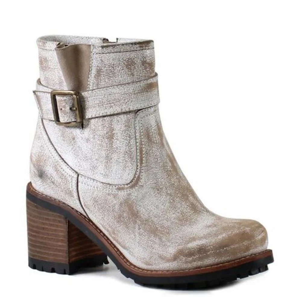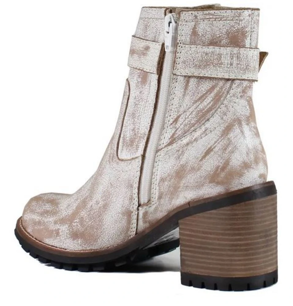 This stylish vintage-like boot features a roomy fit and rounded toe. Burnished leather give these boots a worn feel, while still maintaining a trendy look. Heel measures 2.8 inches high and insole is cushioned.