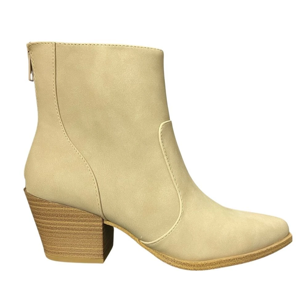 These cute Western style boots feature a pointed toe and faux leather upper. A 2.4 inch heel height and back zipper for easy on and off make these super easy to throw on with any outfit.