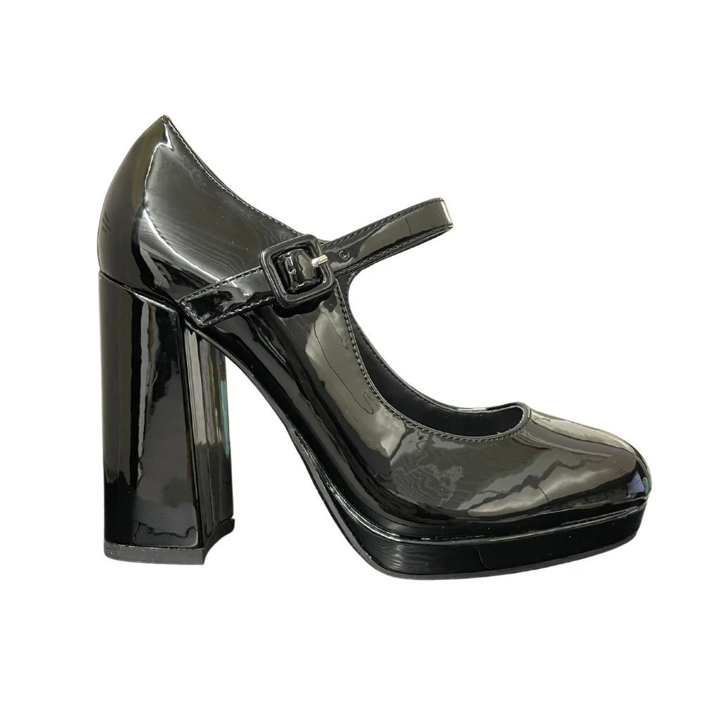 A classic style with an edgy feel. These adorable pumps feature an adjustable buckle strap closure and cushioned insole. A chunky 4 inch heel will have you walking tall all day or night long. Patent leather upper.