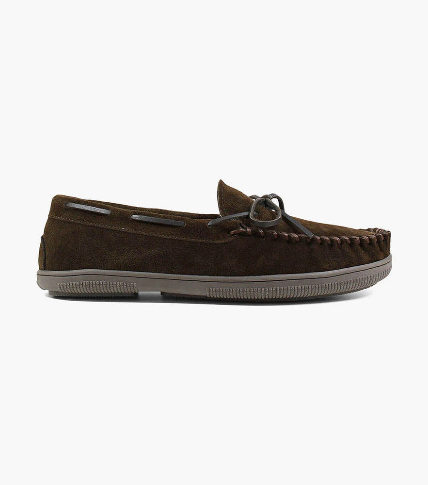 Slip into comfort after a long day in the Florsheim Cozzy Moc Toe Tie Slippers. Super soft suede with faux shearling linings and an Ortholite® footbed. You won`t want to take them off once you put them on.