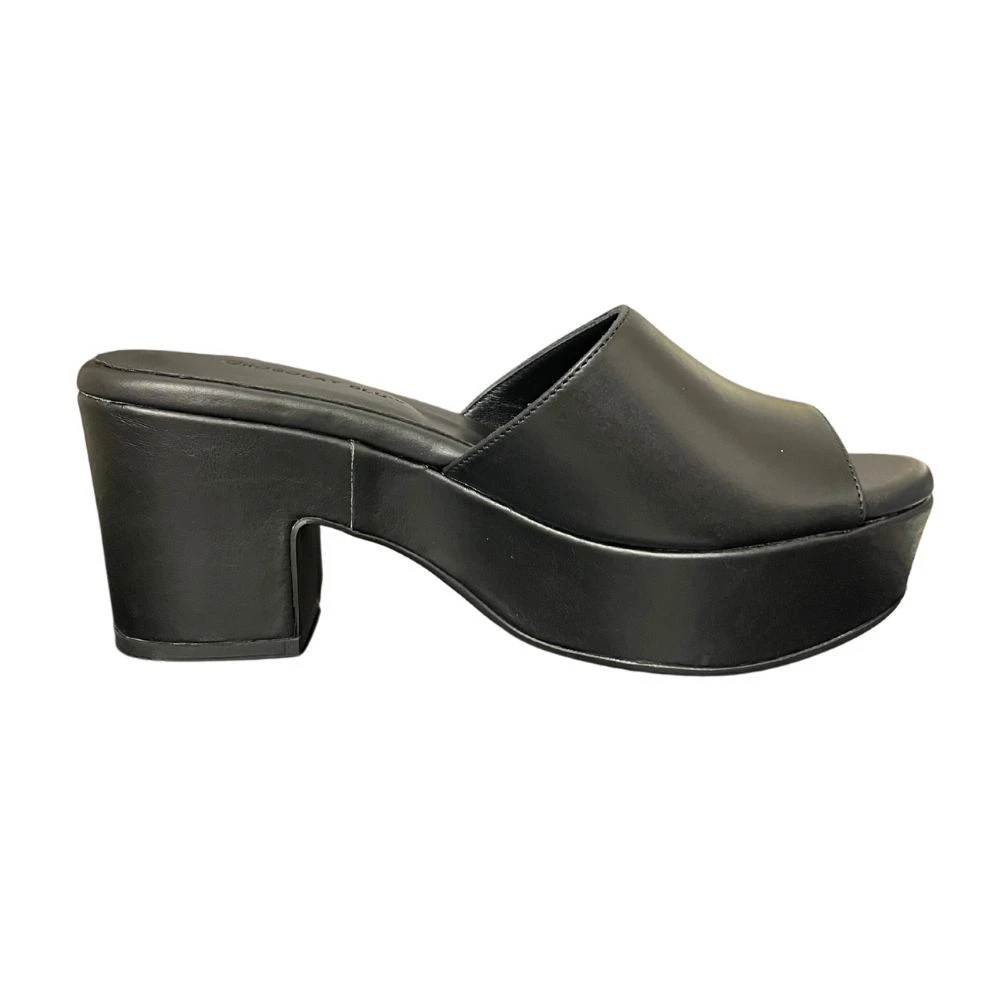 This chunky platform sandal features a 3 inch heel and open toe design. A cushioned footbed will keep your feet comfortable all day long. Easy slip on style with no buckles or laces. Pair with a skirt, dress or jeans.