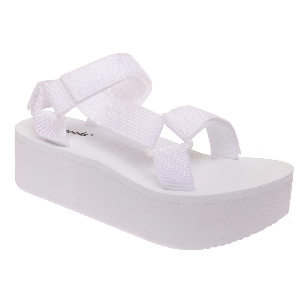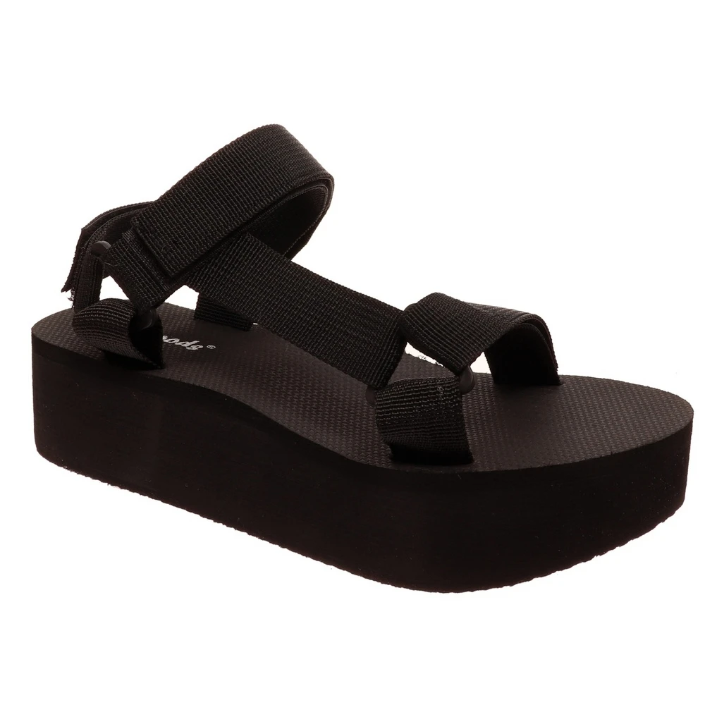 These outdoor sandals have a durable polyester upper and comfortable 1.75-inch platform that dries quickly after getting wet. Tighten the straps with the hook-and-loop closure for just the right fit.