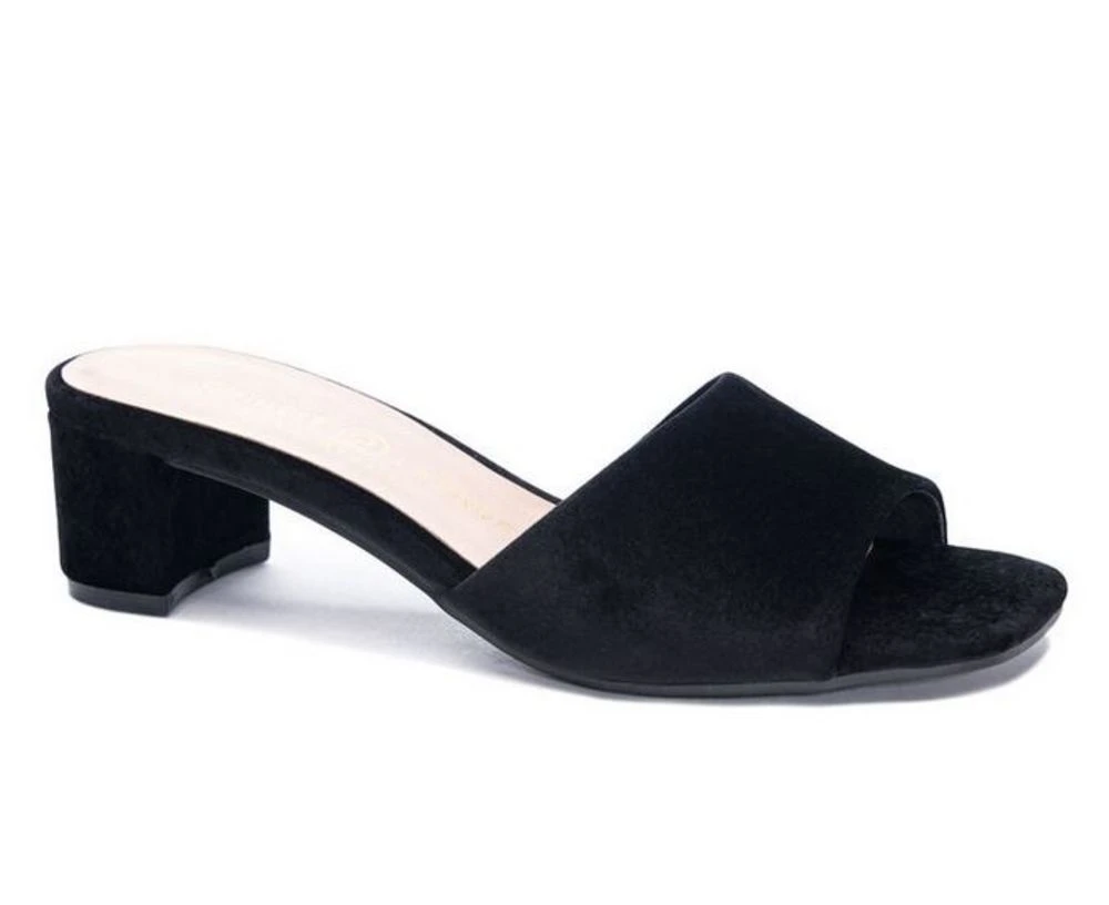 This classy slip on heel can be dressed up with a dress or skirt or dressed down with jeans. Features a 1.5 inch heel and a velvet upper. A soft square cut toe and easy slip on/off design.