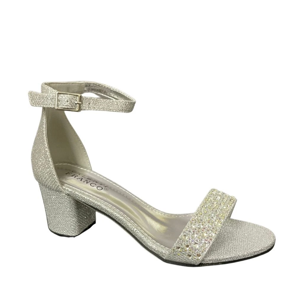 Dazzle in these sparkley, strappy heels. These heels are perfect for a dressy, formal occasion. Features a rhinestone strap that goes across the toes and an adjustable buckle around the ankle. A 2 inch heel makes these shoes super easy to walk in all day or night long.