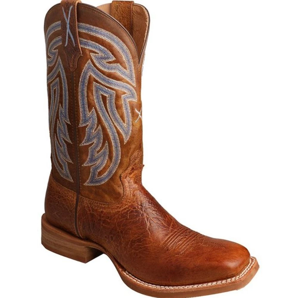This Western rancher boot is designed with handcrafted full-grain leathers and leather lining. Featuring Twisted X CellSole comfort technology in the footbed, offering all day comfort. A 1 inch walking heel and premium leather outsole. Pairs well with blue jeans.