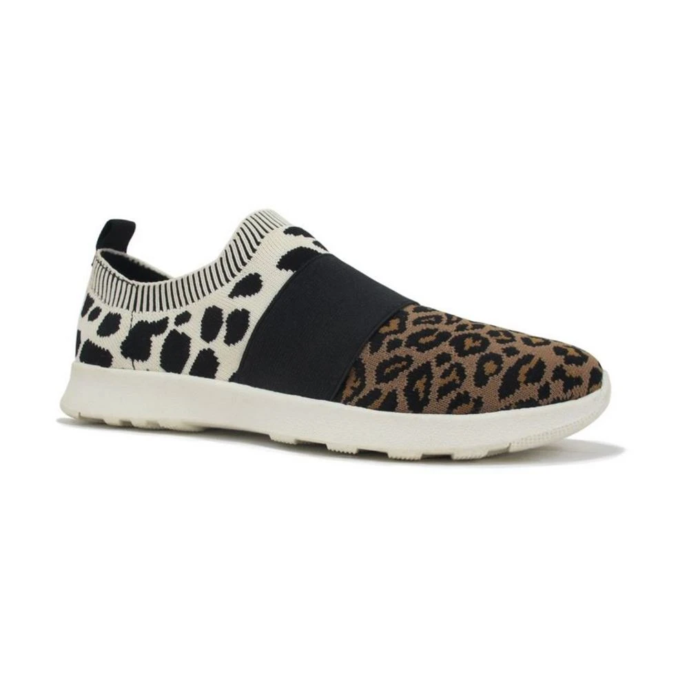 These fun JELLYPOP sneakers feature a mixed material upper of leopard prints. An elastic band over the upper keeps your feet snug and supported all day long. Round toe and synthetic sole. Slip them on and you`re off.