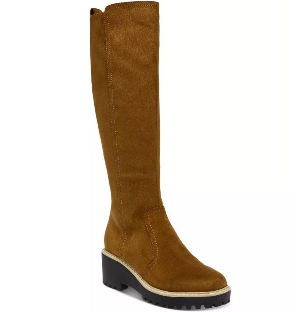Dv by Dolce Vita introduces the Rhory. These tall, chunky boots will elevate your style. Features a 2-1/4` wedge heel and a Polyurethane upper. Round toe and inner zipper for easy on and off. A memory foam insole will keep you feet comfy all day long.