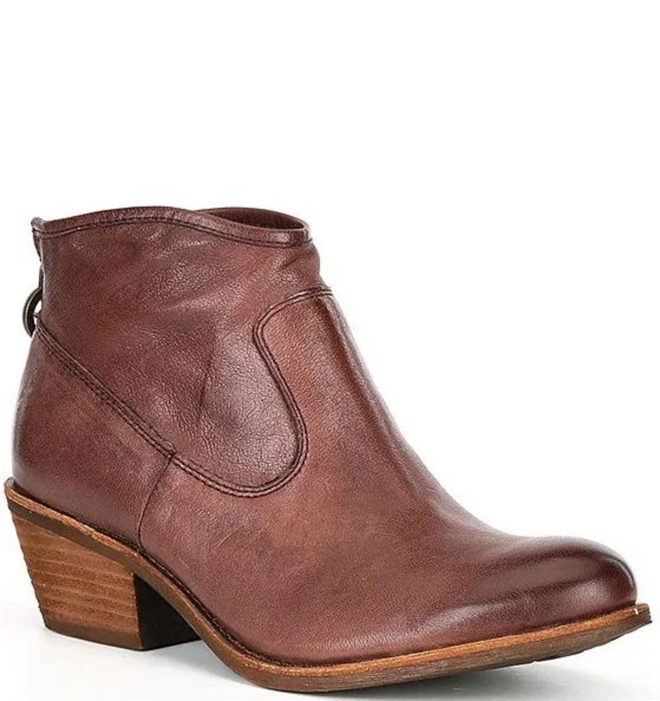 These stylish western booties feature an Italian leather upper and easy back zipper closure. A cushioned footbed and heel and arch support for a long day on your feet. Stacked heel height 2`. Pair with a flannel and some jeans.
