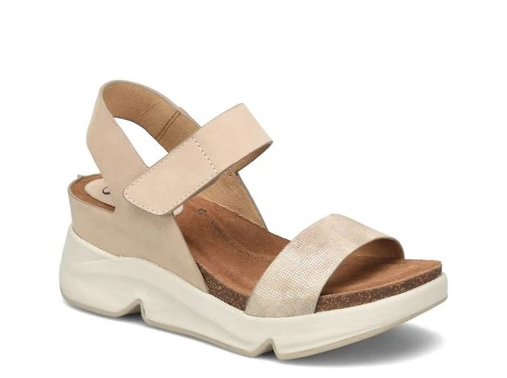 The Caison is a causal wedge sandal, perfect for any outing. A wedge that can be worn all day thanks to a comfort foam footbed and adjustable hook and loop closure. Round open toe and 2.75` wedge heel.