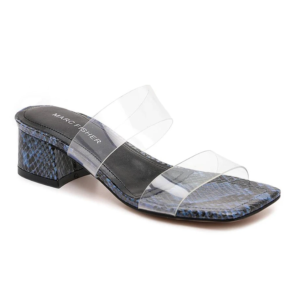 Take practical fashion to a whole new level in the Yori by Marc Fisher. With a reptile pattern, low stacked heel, and a clear lucite upper, these trendy shoes can be worn to the office or to the bar. The heel is 1.75 inches tall.